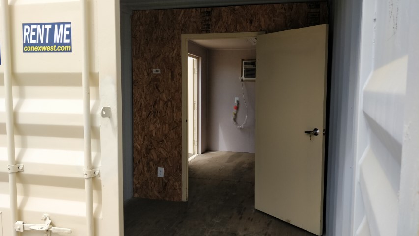 Conexwest offers an exclusive 20ft combo office plus storage containers for sale.  Access each space separately through interior man doors and secure, exterior cargo doors. The Combo office plus storage container includes R-13 insulation, dual pane windows, and a HVAC unit. The container fits into a standard parking space.