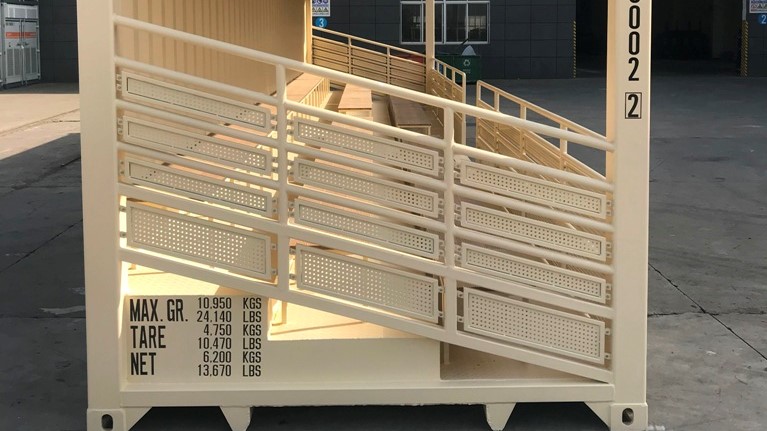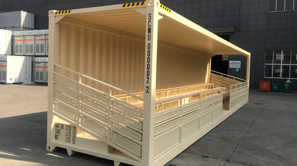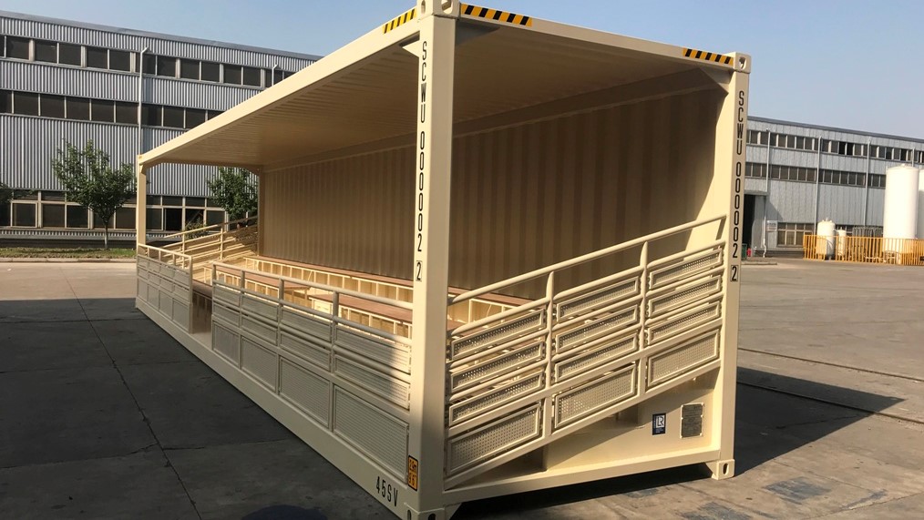 Knock it out the park with this 40ft shipping container bleacher for your next event! This portable bleacher can provide seating up to 74 people for sporting events, concerts, festivals, and trade shows. We included guard rails on the front and the sides to protect the audience. Plus, the steel roof not only provides shade but shields your fans from objects coming their way. The two forklift pockets makes it easy to move the bleachers wherever you need it next. Make it your own with the help of our all-star fabrication team. Need it in a pinch? We offer fast and easy delivery in the US.