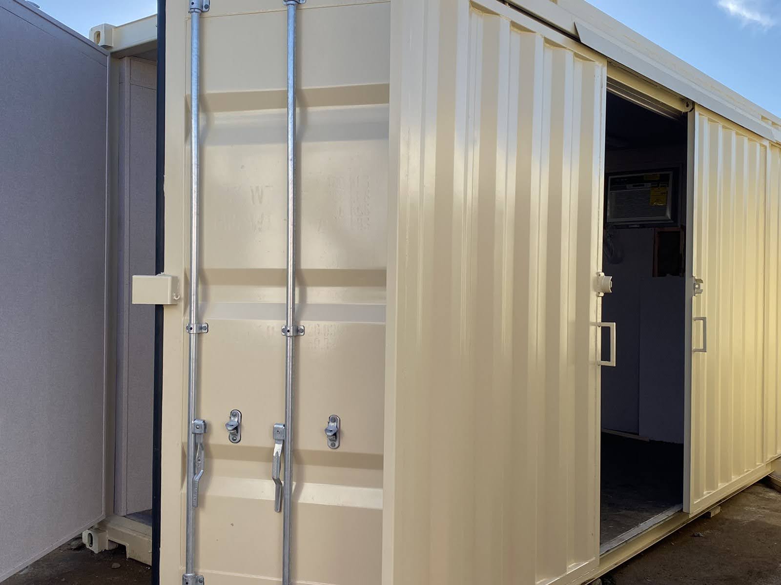 Give your shipping container a rustic vibe while conserving space with these barn doors!