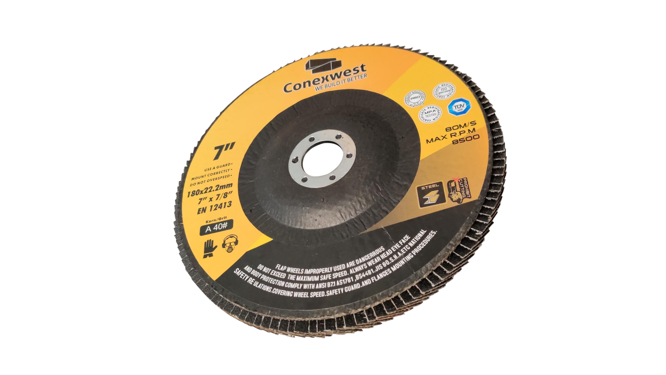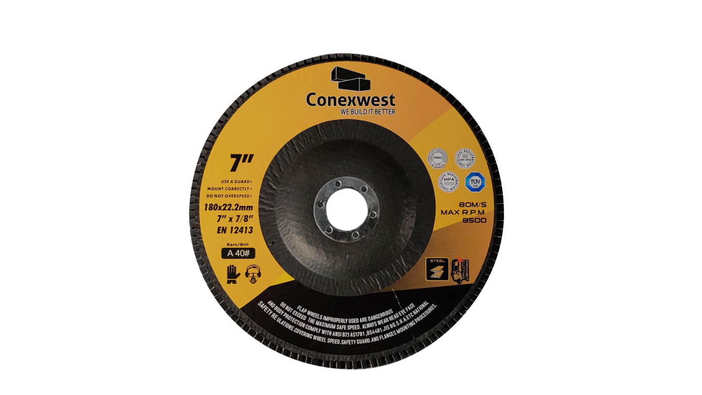 Remove rust, paint, and other contaminants with ease from metal surfaces with this 40 grit flap disk! This type 27 sanding wheel guarantees a solid attachment to most angle grinders. Order your calcined 7 in. sanding wheel today to start removing unwanted contaminants from metal surfaces fast! (Each order is a pack of 1).
